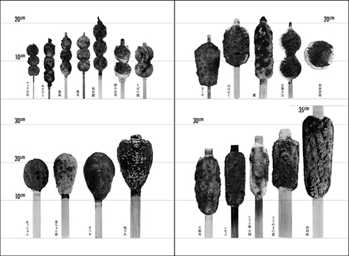 各地で親しまれている御幣餅の多様な姿を横軸に